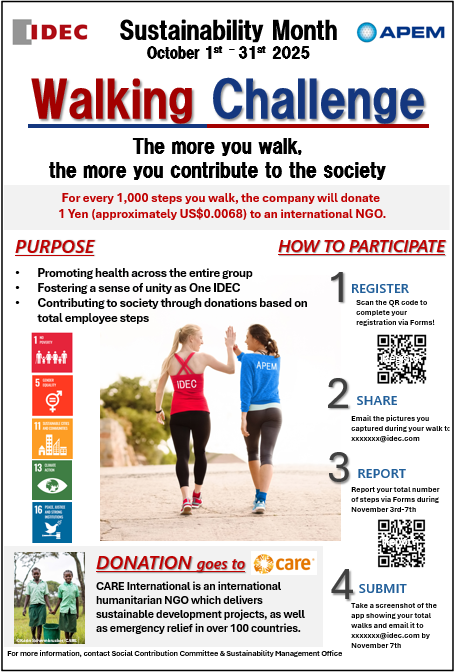IDECグループ全体で、社員の健康増進と社会貢献を目的に「Walking Challenge」を開催しました。