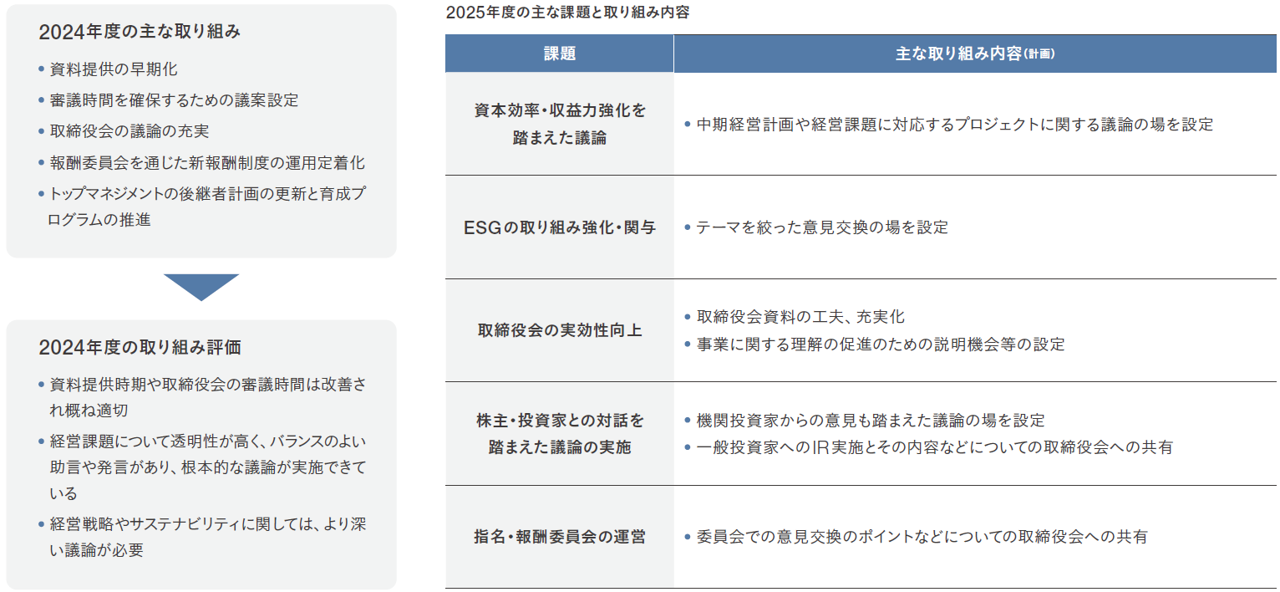 一方で、経営計画における収益力、資本効率や人材育成に関する議論等の機会が不足しているとして評価が低下し、全体として2023年度と同様の評価となりました。