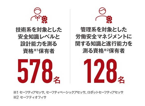 IDECでは、安全に関するセーフティアセッサ資格制度の最上位資格であるセーフティリードアセッサ資格者を筆頭に、日々お客様と接する営業員やサポート部門スタッフも含めた有資格者がお客様の機械設備の安全化を支援します。