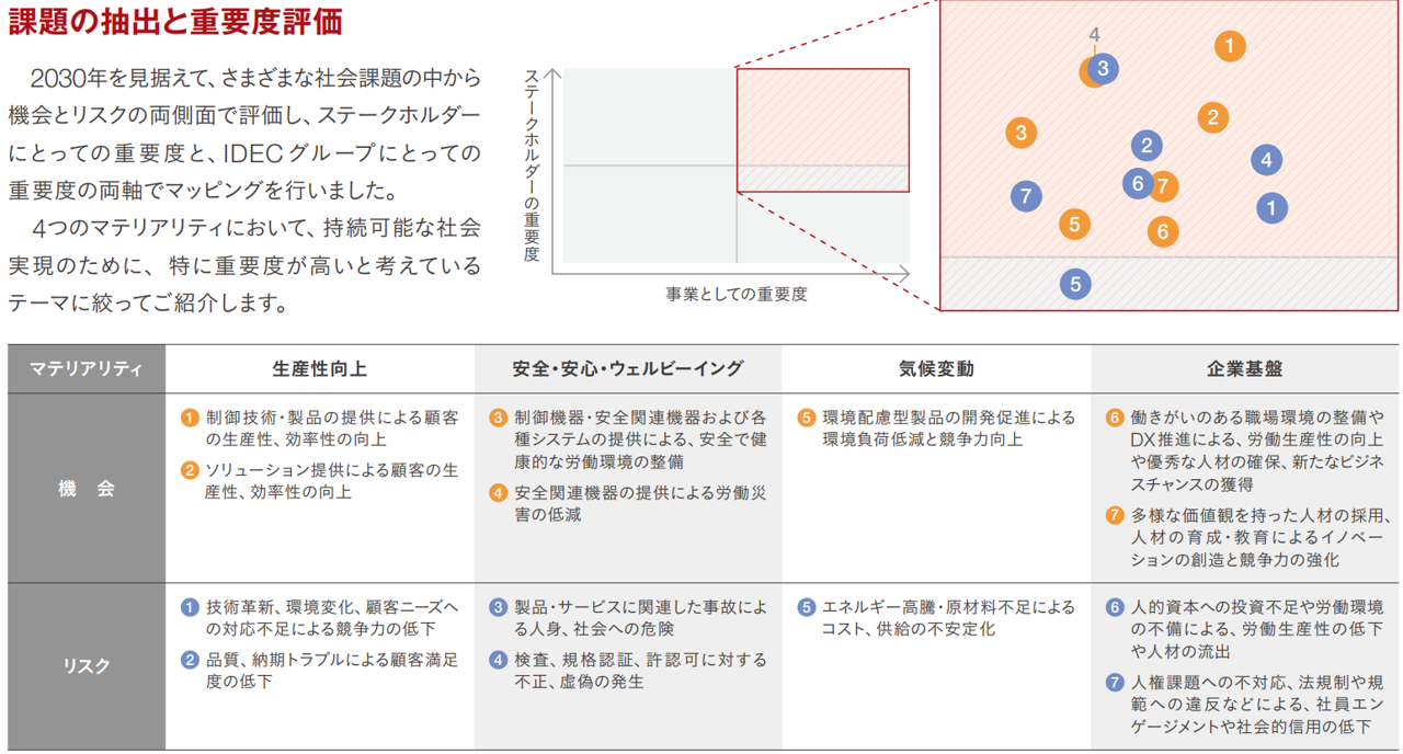 | 企業基盤 | 『The IDEC Way』の浸透と、働きがいのある 魅力的な職場づくりによる企業の活性化 ダイバーシティ・エクイティ&インクルージョンの推進と、人的資本への投資拡大による、新たな価値やイノベーションを創造する人材の育成 | エンゲージメントスコア(国内) | 継続 | ― (主要課題3項目の スコア改善(2022年度比)) | ― | 2026年度のグローバルサーベイ実施後に KPI設定 |